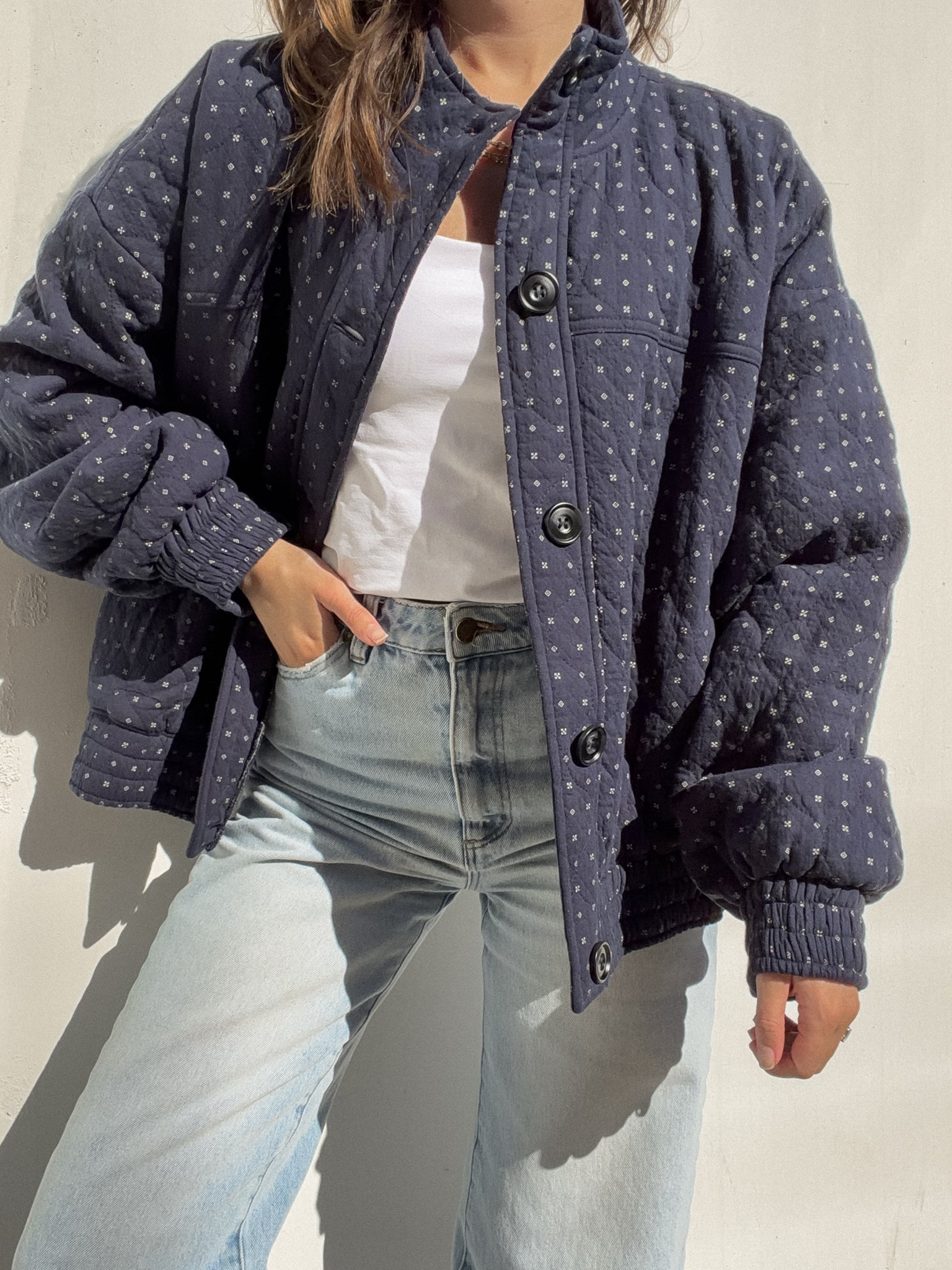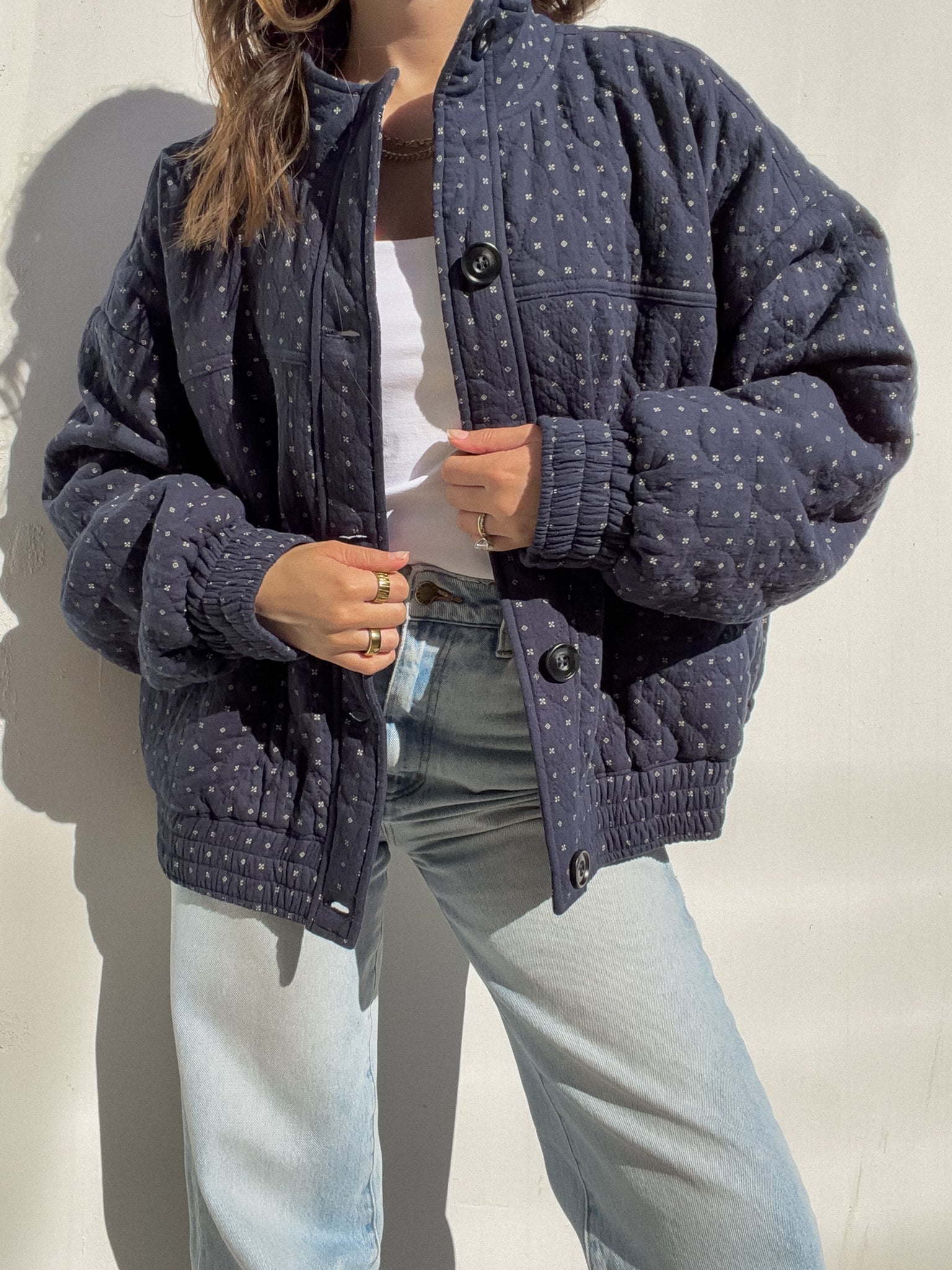 Introducing our NEW Poker Face Quilted Jacket! This jacket is the new perfect style to layer outfits with when visiting the snow this winter season. Style with a basic long sleeve, light wash denim, and some snow boots for your next cabin trip! Elevate the look with gold jewelry.