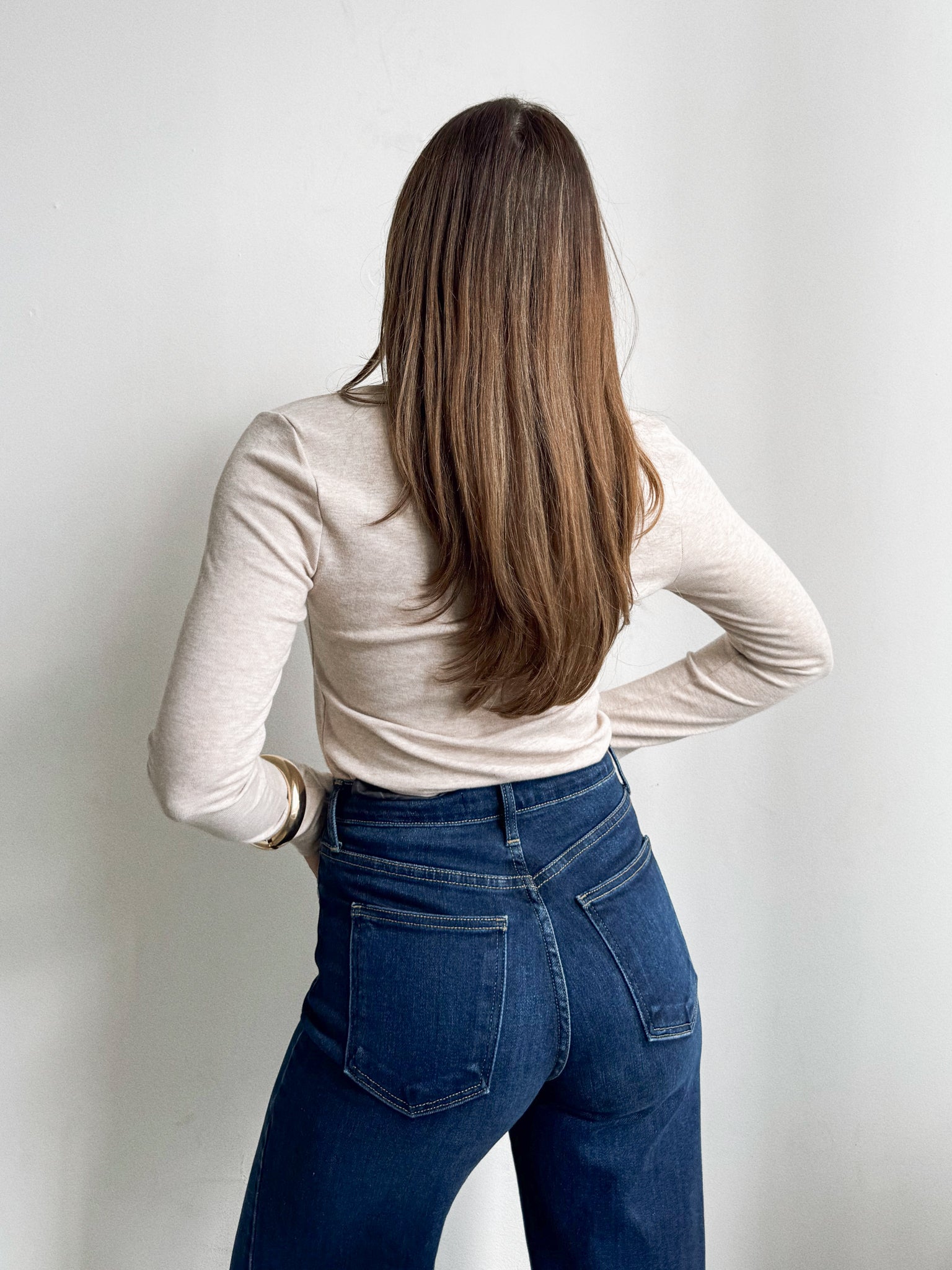 Pair our NEW Tate Long Sleeve with your favorite denim and uggs for a casual evening look. Style this outfit with gold jewelry and puffer jacket for extra warmth!