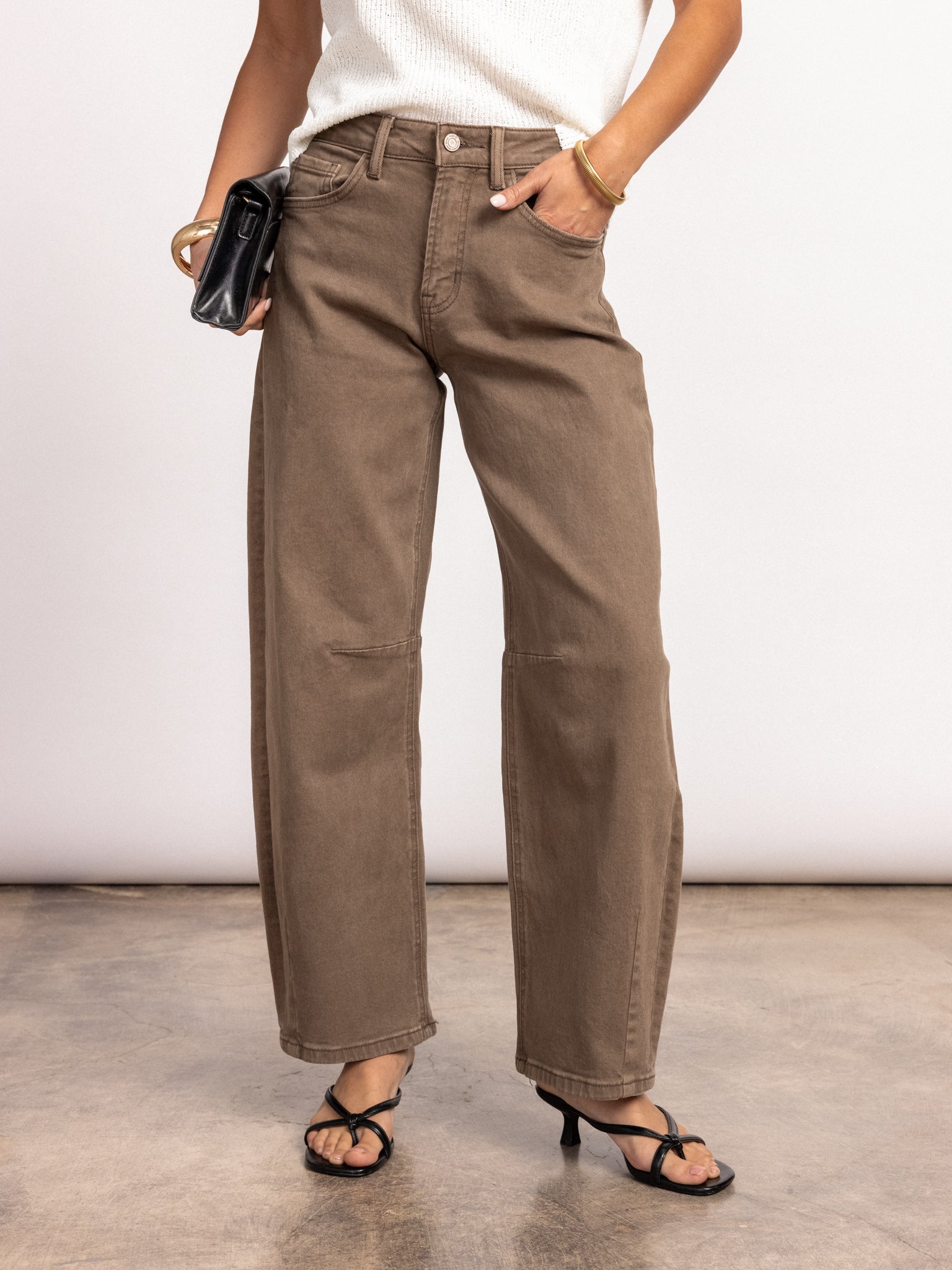 Our Moonstone Barrel Jeans is the perfect pair of denim to spice up your wardrobe this spring season. Style these jeans with a white tank, kitten heels, and a clutch bag for a casual dinner fit!