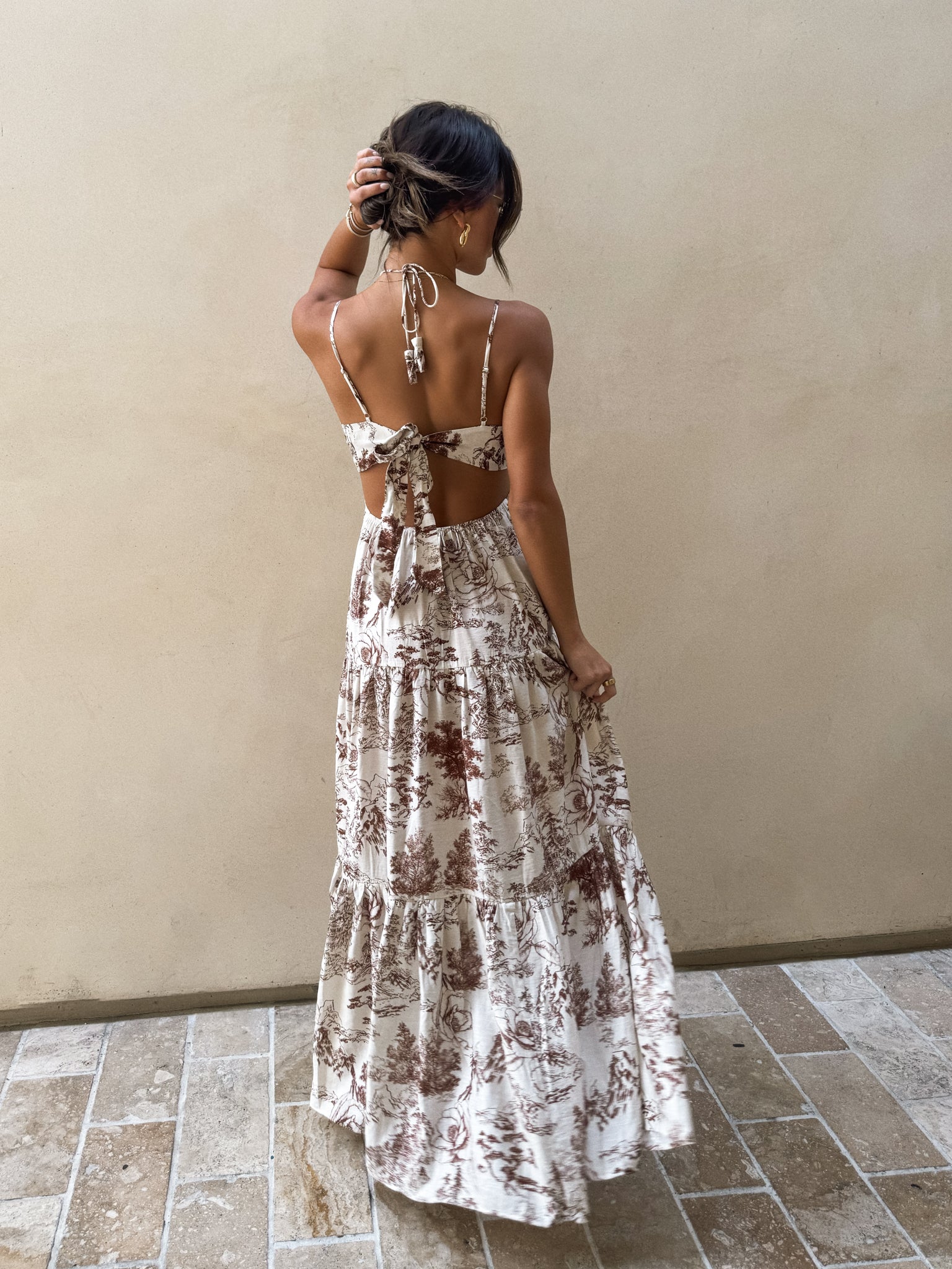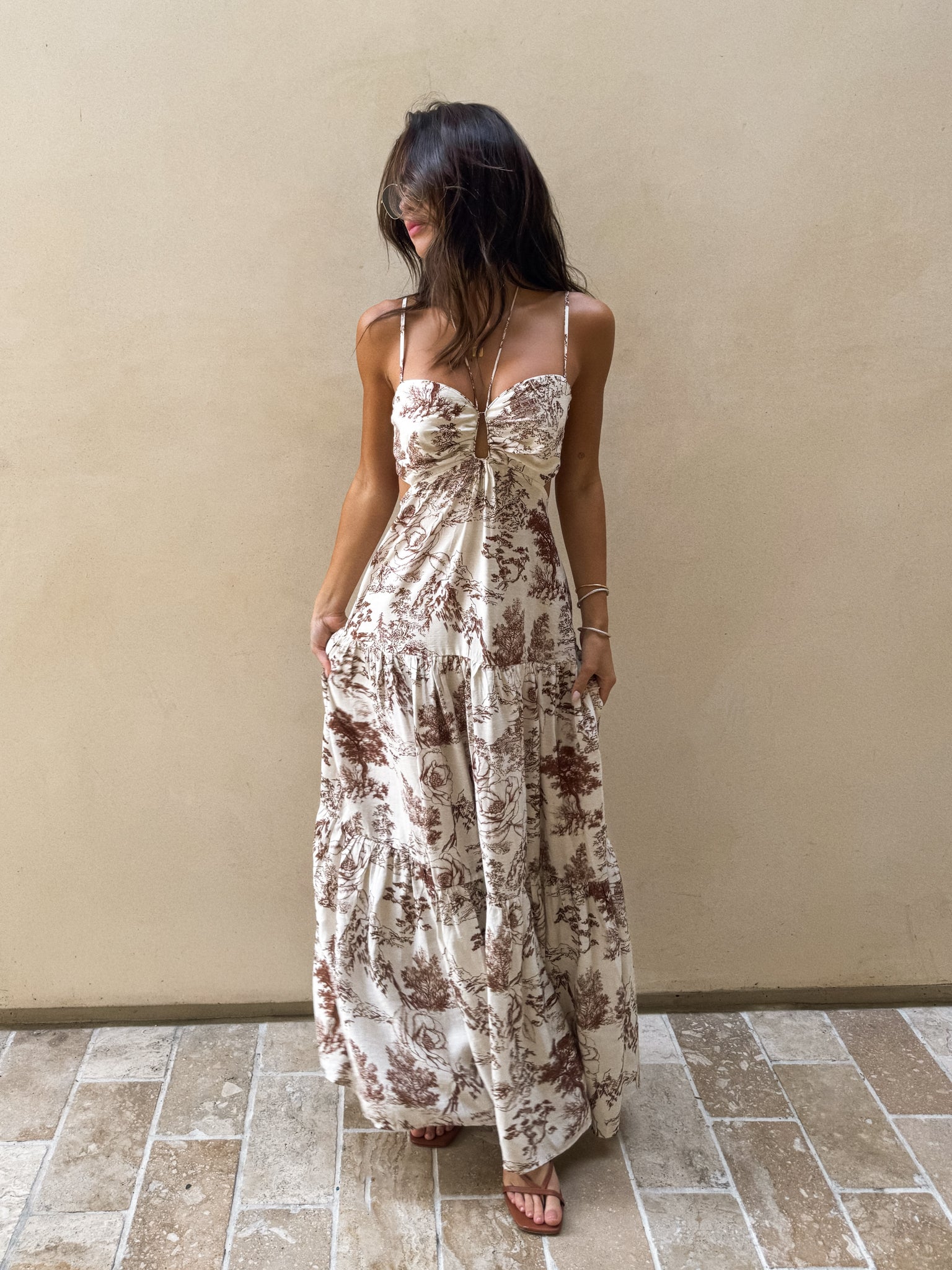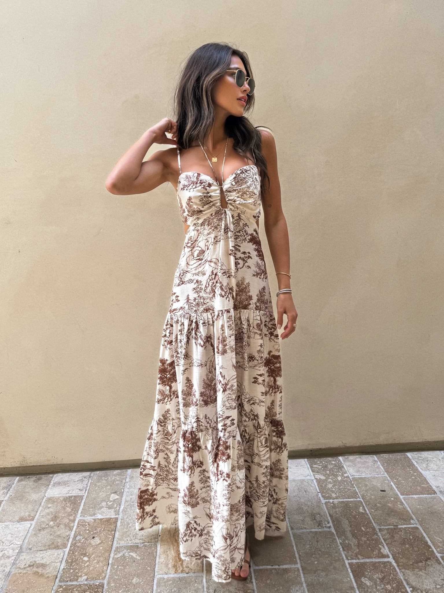 Your vacay won't be complete without the Fuji Tiered Maxi Dress. Pair with brown heels and a woven bag for your next dinner and drinks.