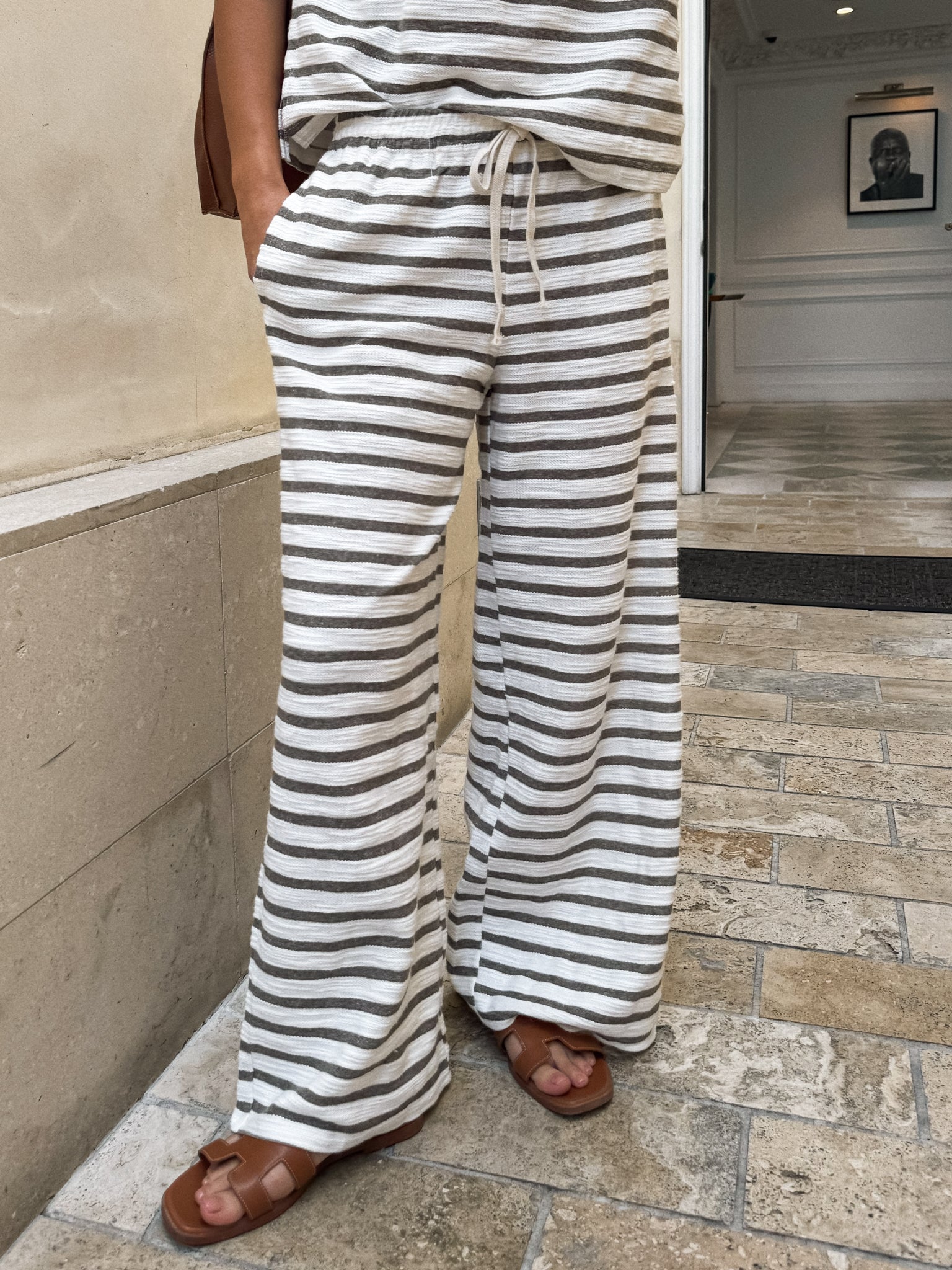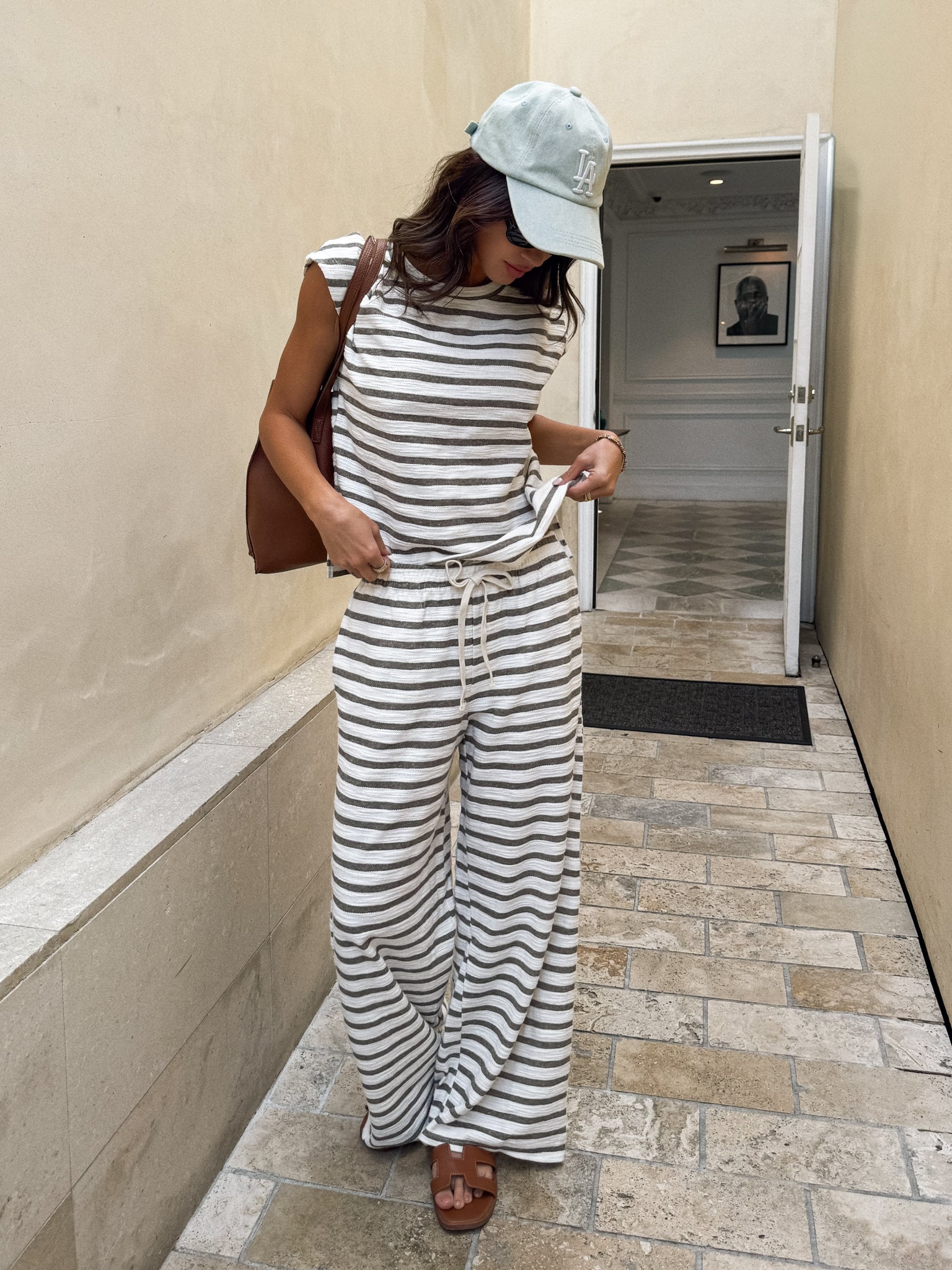 Our goal this Spring: wear more stripes. Style our NEW Out and About Stripe Pants with the matching top and slippers for a comfy stay-at-home look. Style with sandals and a hobo bag for a casual, on-the-go look.