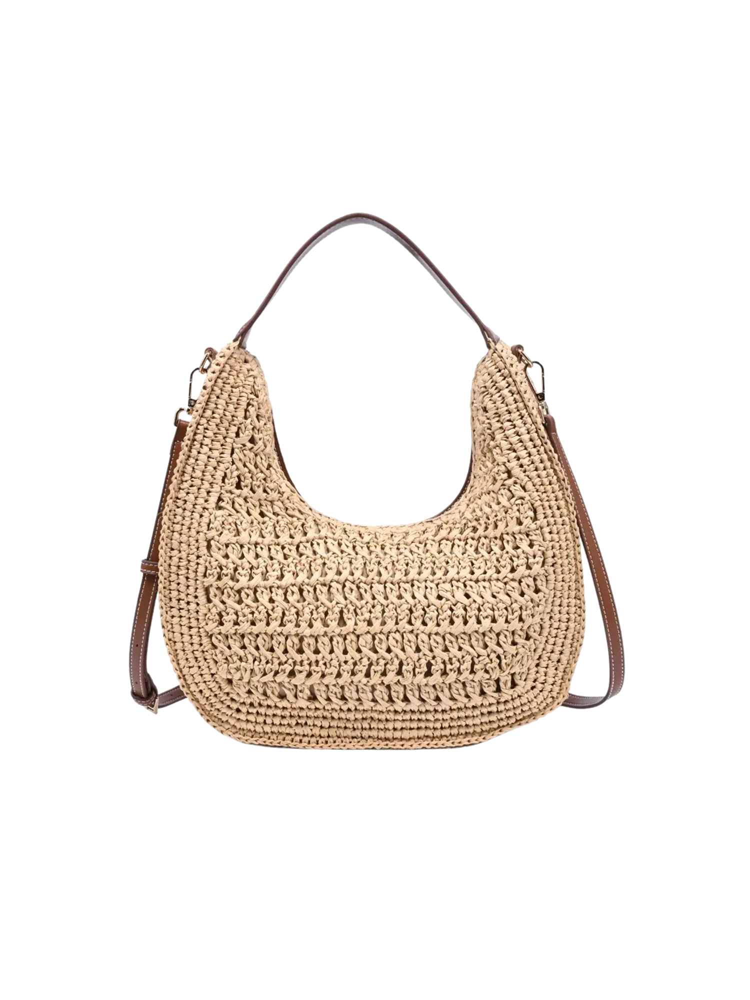 Our Sorrento Raffia Handbag is an airy woven hobo bag with a curved silhouette, top handle and adjustable crossbody strap. On-trend, practical and travel-ready — a seasonal staple to add to your handbag rotation.
