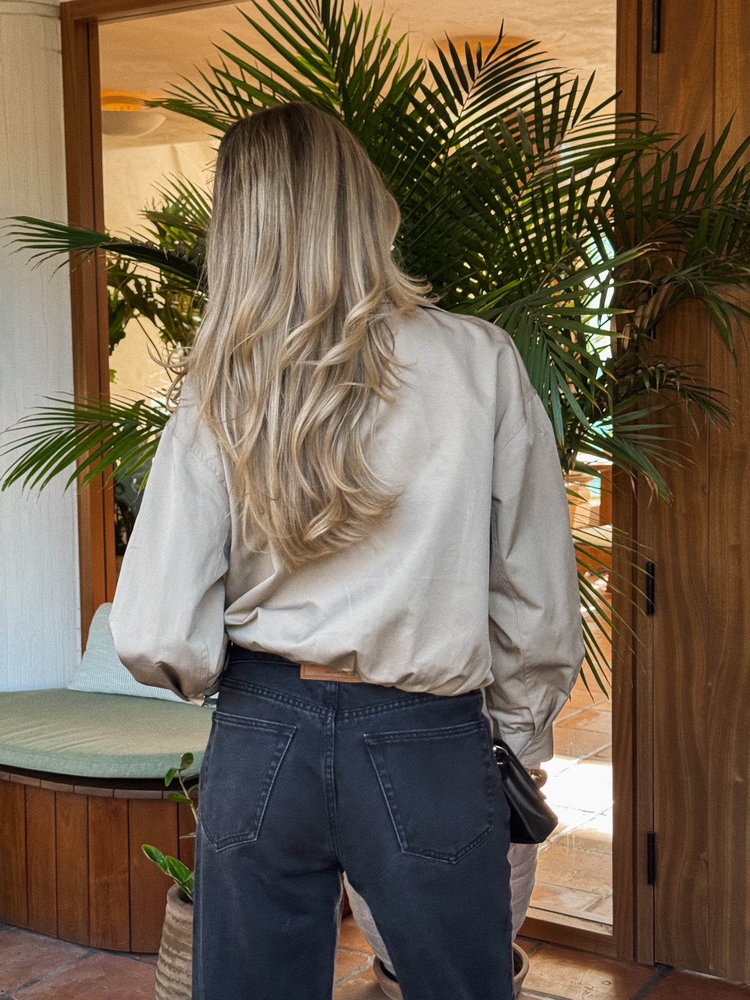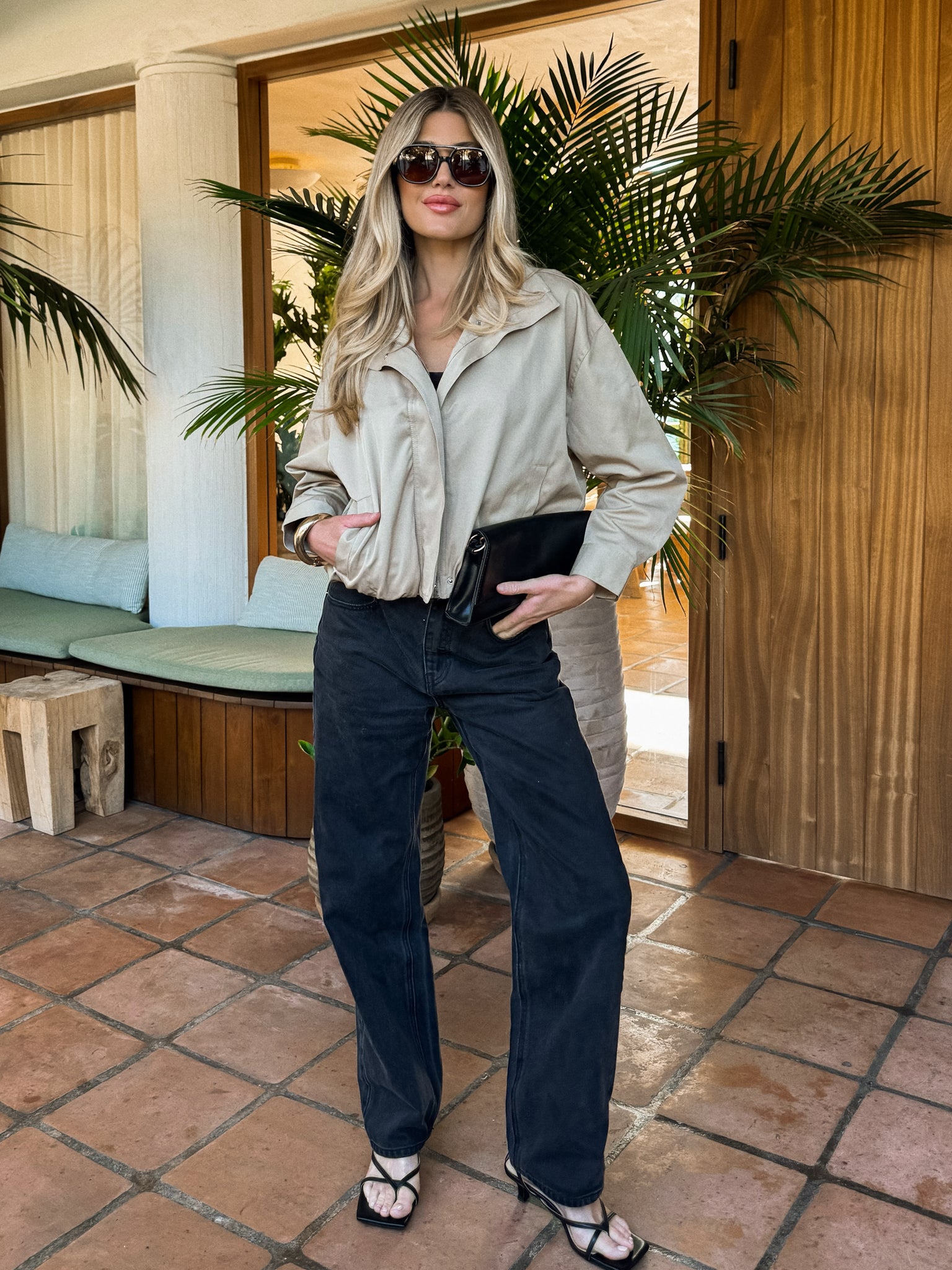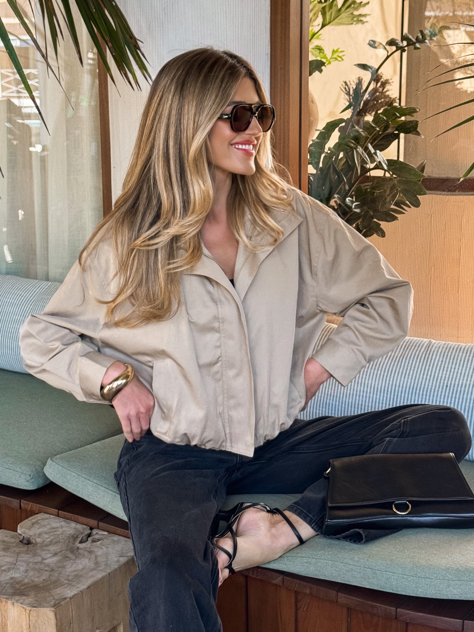 We love a cropped bubble hem jacket, and this one is the perfect piece to add to your outfit this Winter. Style with your fav black denim jeans, black tank, and heeled boots.