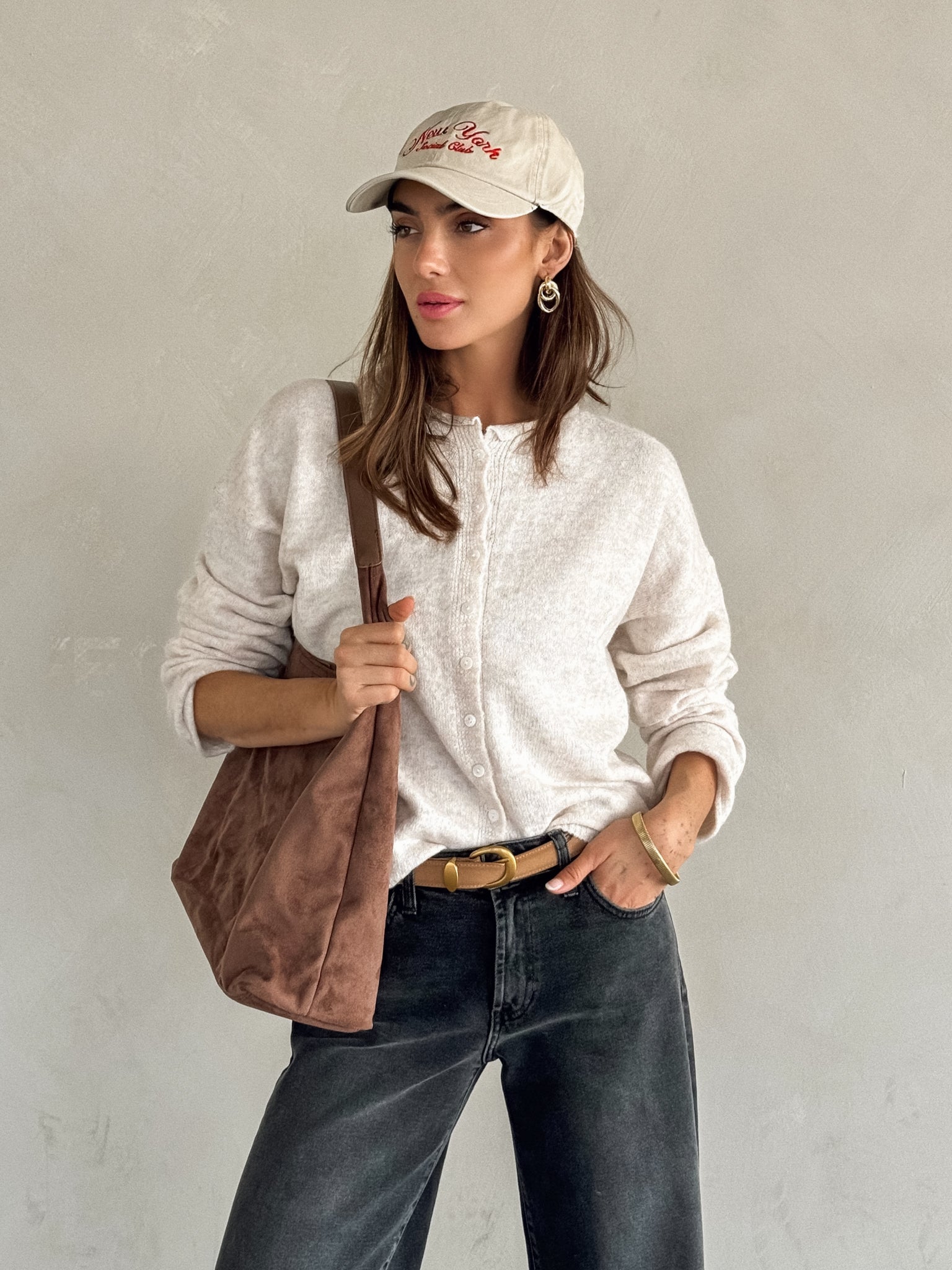 You can never go wrong with a cream sweater. Style our Alpaca Knit Sweater with your favorite relaxed denim and uggs for the perfect fall look!