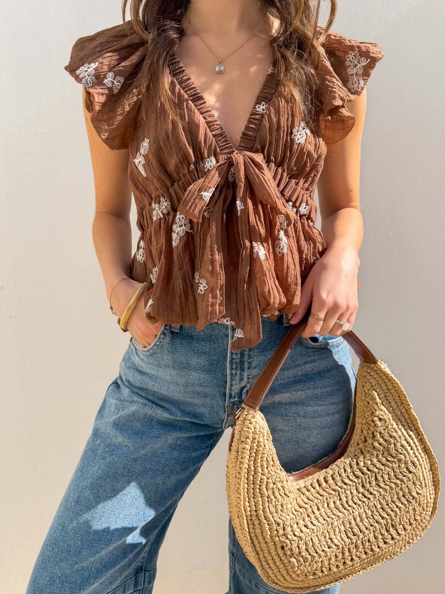 Endila Embroidered Ruffle Top